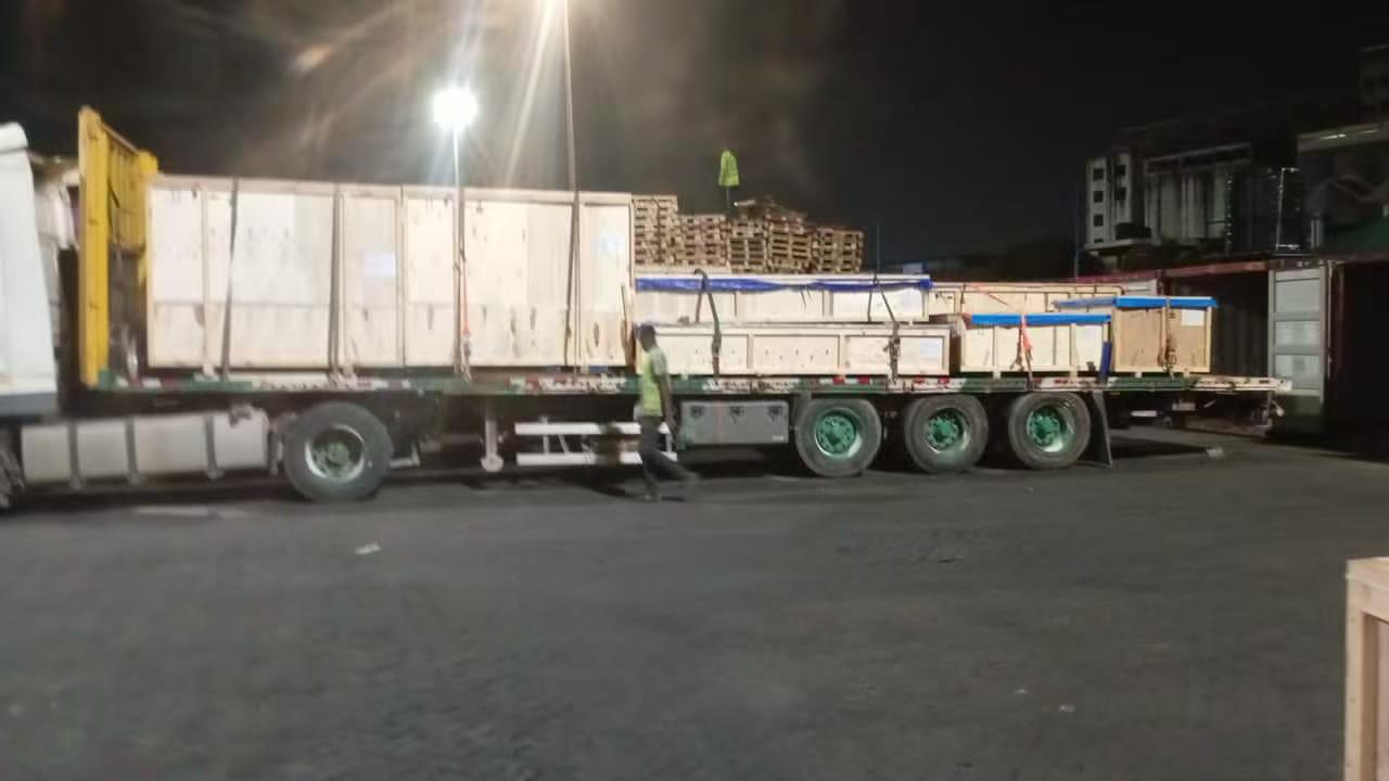 Sawise tekane barang ing Pelabuhan Tema, Ghana, kita tim profesional rampung nampa lan pengawasan sakcepete. Kanggo daya gedhe peralatan, kita conducted lengkap-proses lashing lan pitulungan kanggo nyegah pamindahan nalika transportasi darat. Kabeh barang ditutupi kanthi lengkap tarpaulins laminated anti banyu kanggo nolak cuaca atos lan karusakan Kelembapan. Saben kendaraan transportasi dilengkapi formulir kuitansi standar kanggo traceability lan verifikasi lengkap.